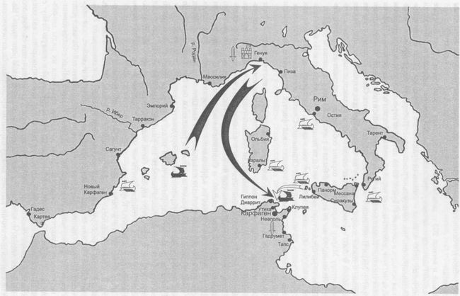Таким образом, римская армия на 400 грузовых судах, под прикрытием 40 военных, отправилась из Сицилии к Африке[11].