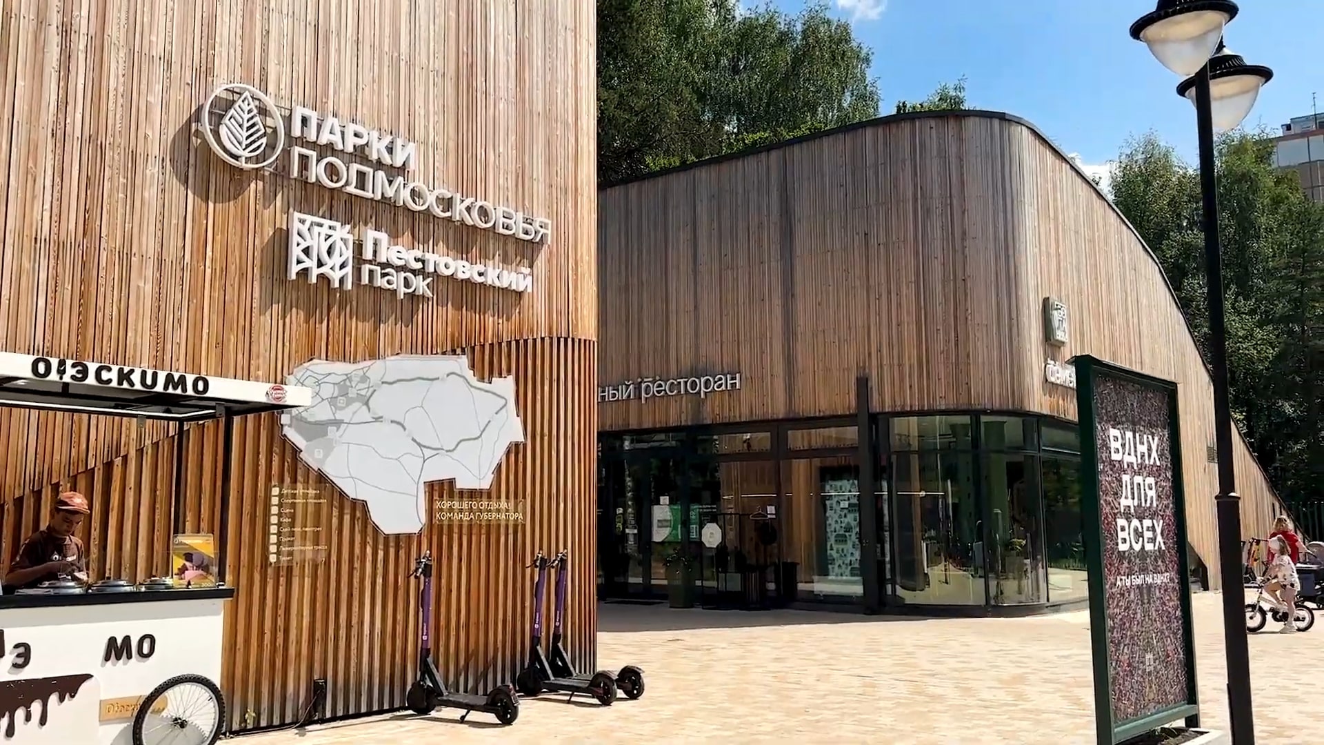 В парке есть различные зоны для отдыха и спорта: