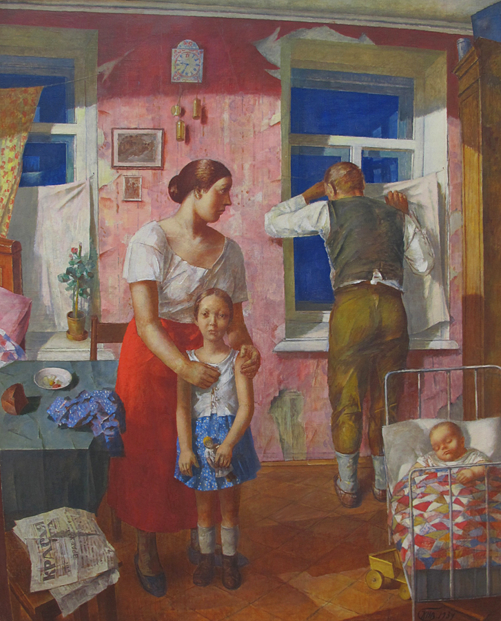 В 1932 году К. Петров-Водкин возвращается к творчеству в связи с улучшением здоровья и общего самочувствия. В следующие несколько лет он создаёт серию натюрмортов, несколько работ, посвящённых А. С. Пушкину, «Портрет В. И. Ленина» и картину «1919 год. Тревога», ставшую одной из вершин его позднего творчества. Одной из последних картин художника стала «Новоселье» (1937).
