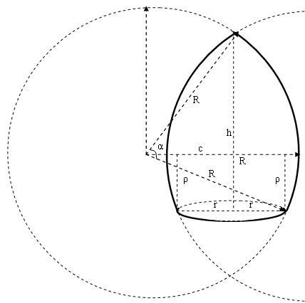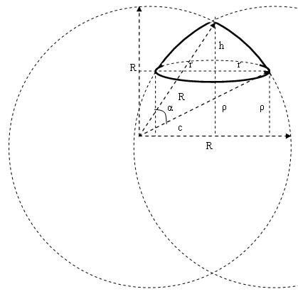 ρ — расстояние от основания купола до горизонтальной оси, проходящей через центр образующей окружности;