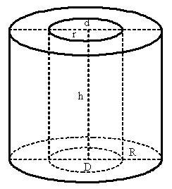 Площадь поверхности цилиндрической трубы — это сумма боковых площадей внешнего и внутреннего цилиндров трубы и площадей верхнего и нижнего оснований трубы.