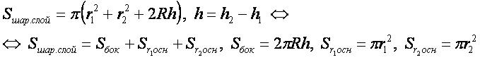 Sшар.слой — площадь поверхности шарового слоя.