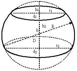 Sосн.r1сегм — площадь основания меньшего шарового сегмента;