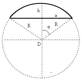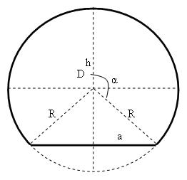 - α — угол между осью симметрии сегмента и радиусом в крайней точке сегмента;