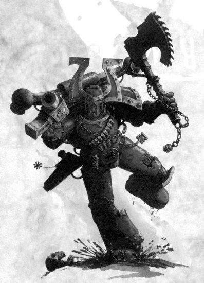 Наиболее частое оружие ближнего боя Пожирателей Миров — Цепной Топор Кхорна, оружие, редко встречающееся за пределами Легиона. В руках Космодесантника-Берсеркера это ужасающая сила, способная легко прорубиться даже сквозь Силовую Броню.