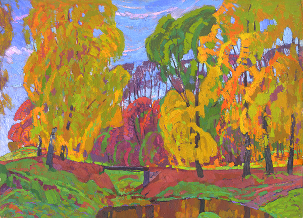 То же относится и к усилению декоративности живописи. Если в работах начала 1960-х художник ещё не решался взять цвет в полную силу, перенести на холст зримую многозвучность мира, а его пейзажи строились преимущественно на благородной мягкости живописного решения, близкого тональному, но в новых работах декоративность колорита зачастую определяет выразительную силу произведения.