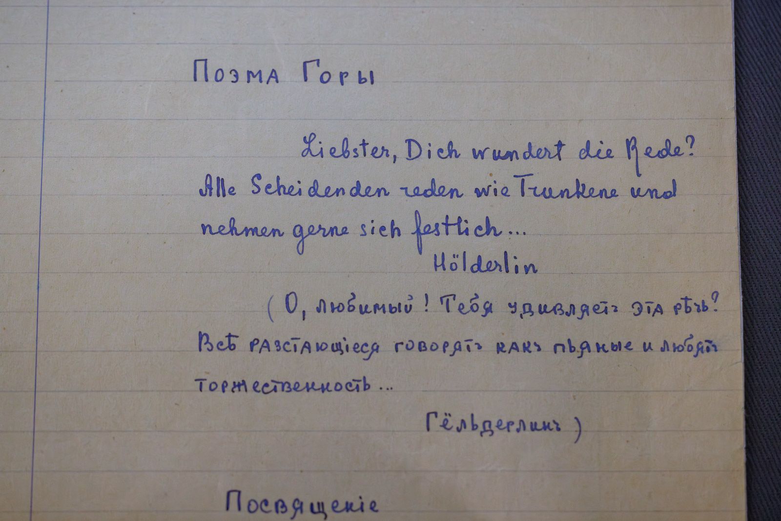 Не помню, кто мне её дал, но когда я прочёл «Поэму Горы», то всё стало на свои места. И с тех пор ничего из того, что я читал по-русски, на меня не производило того впечатления, какое произвела Марина.