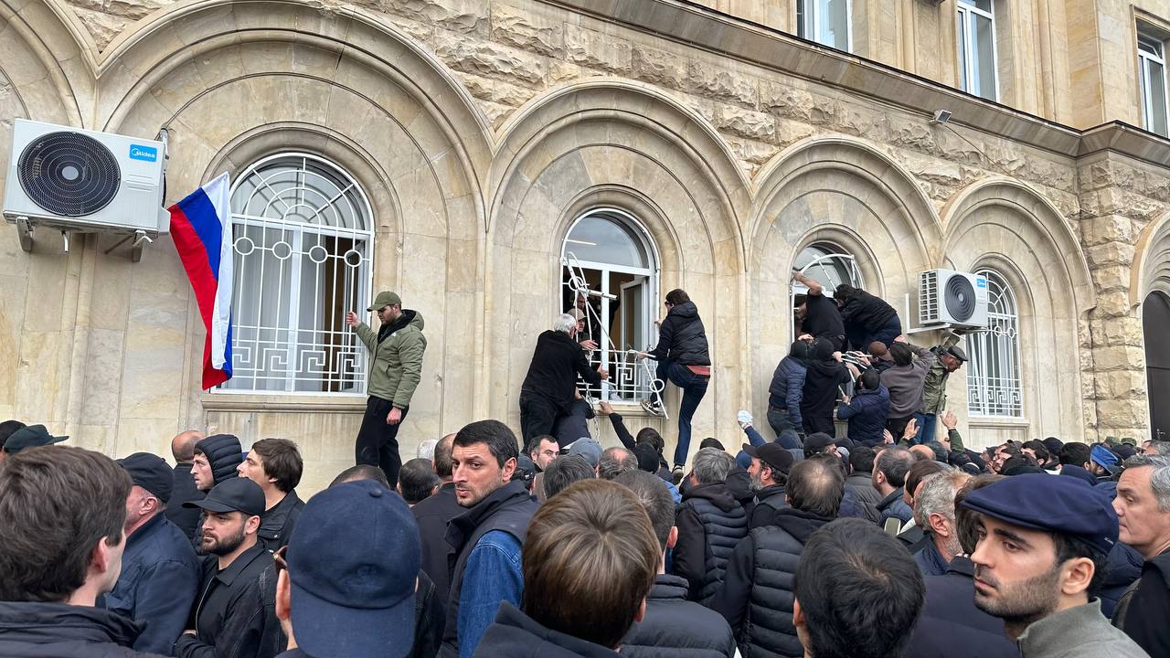 - ↑ Протестующие в Абхазии проникли в здание парламента (15 ноября 2024 года). Проверено 15 ноября 2024.