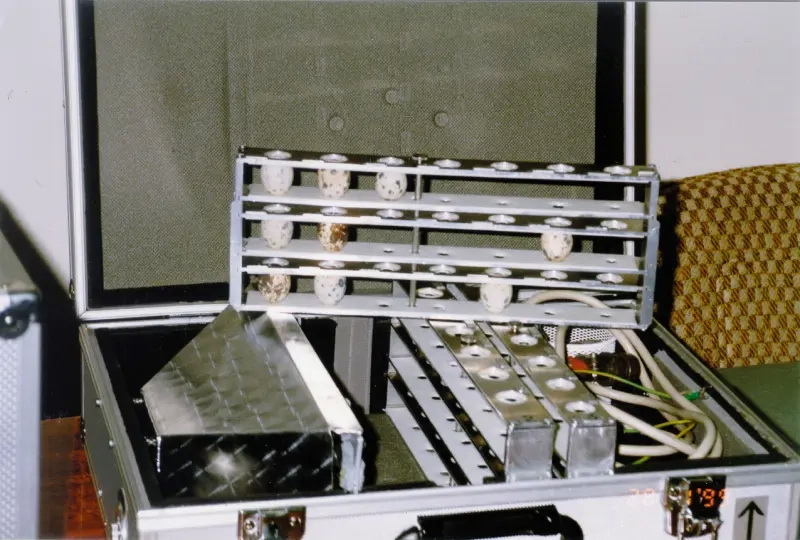 Впервые попытка изучить, как развиваются зародыши в перепелиных яйцах в условиях космического полета, была проведена в 1979 году. На космическом аппарате «Космос-1129» (биоспутник серии «Бион»), который стартовал 29 сентября 1979 года с космодрома Плесецк, в рамках «Интеркосмоса» проводился совместный эксперимент советских и чехословацких специалистов по космобиологии под название «Инкубатор». Целью эксперимента было установить, могут ли в условиях невесомости развиваться эмбрионы птенцов. На биоспутнике были размещены 60 оплодотворенных яиц японских перепелов в одноимённой установке «Инкубатор-1». Установка работала нормально и развитие эмбрионов шло успешно, но приземление спускаемого аппарата 14 октября 1979 года оказалось жёстким и многие яйца разбились[1][2].