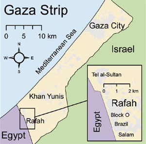 Рафах на карте Сектора Газы.