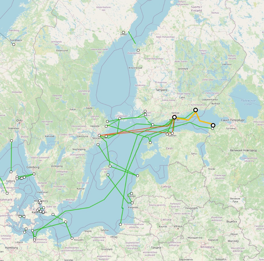 - STO-HEL-One между Швецией и Финляндией через Аландские острова.