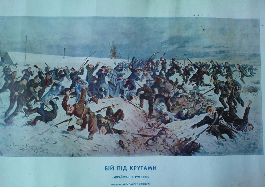 29 (16) января 1918 года состоялся бой под Крутами, в котором Студенческий Курень из 300 бойцов был разбит 4-тысячным большевистским отрядом. Несмотря на такое преимущество, муравьевцы потеряли 350 воинов[5], после чего 50 студентов-добровольцев, взятых в плен, были расстреляны. В тот же день в Киеве вспыхнуло большевистское восстание рабочих на заводе «Арсенал». 4 февраля (23) января 1918 года его подавили воины куреня Сечевых Стрельцов и Вольного Казачества. Перед лицом большевистской угрозы 2 февраля 1918 УЦР и её правительство перебрались из Киева в Винницу. Наступление русских красногвардейцев из Бахмача и Лубны на Киев продолжалось, и 08.02 украинское правительство покинуло столицу. 8 февраля (26) января 1918 года большевистские войска под командованием Муравьева захватили Киев, столицу УНР. Три дня в городе продолжался террор, направленный против антибольшевистских сил.