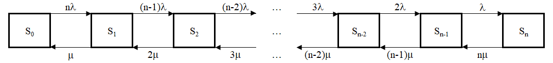 Sn – в системе имеется n-заявок, они обслуживаются n-каналами, источников заявок нет.