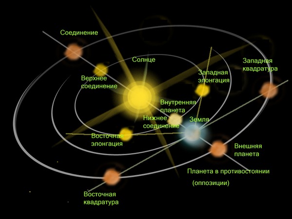 Характерные расположения внутренних или внешних планет называются конфигурациями. Для внутренних планет существуют следующие конфигурации: