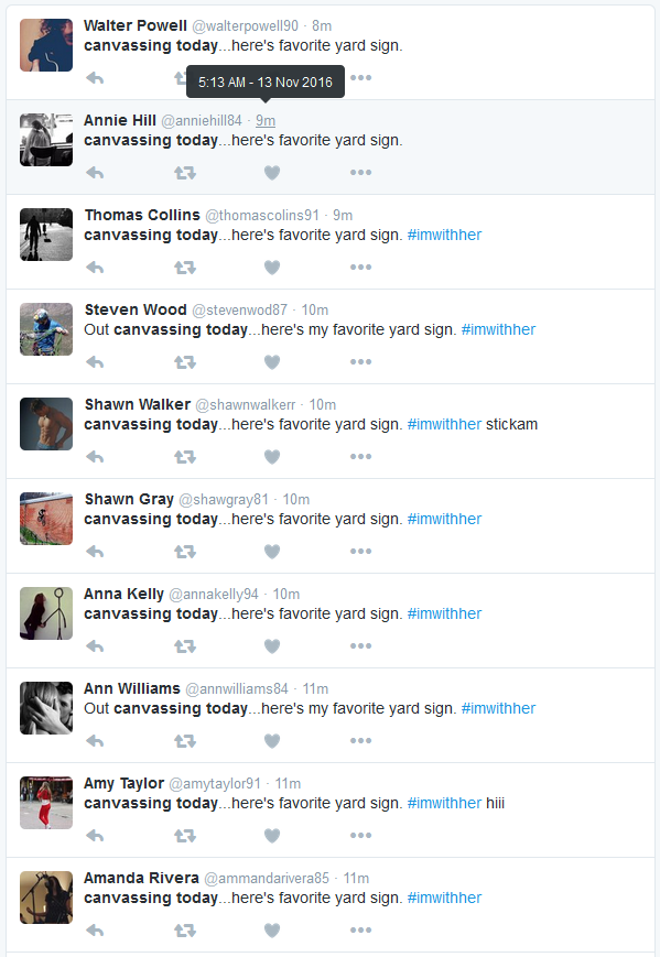 Некоторые операции ботов работают синхронно. Например, ИГИЛ использовало Twitter для распространения своего исламского контента с помощью многочисленных организованных аккаунтов, которые продвигают информацию в горячие новости[19], тем самым распространяя выбранные новости на более широкую аудиторию[20]. Этот режим синхронных аккаунтов ботов можно использовать как инструмент пропаганды, а также для манипулирования фондовым рынком[21].