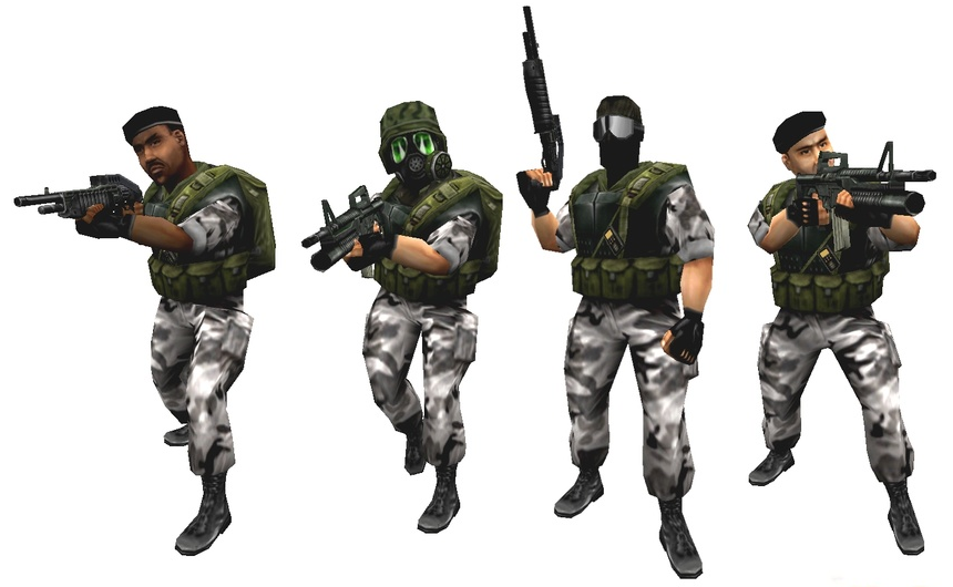 В оригинальной Half-Life (а также в дополнении Half-Life: Blue Shift) присутствуют четыре вида солдат: солдат в шлеме и противогазе, командир в красном берете, солдат в балаклаве и чернокожий солдат с сигарой. High Definition Pack меняет солдата с сигарой на чернокожего командира, шлем солдат в противогазе — с камуфляжного пустынного (белого) на лесной (зелёный), а берет командиров — с красного на чёрный. Эти же виды солдат присутствуют и в версии для PlayStation 2 (включая Half-Life: Decay), однако там белые командиры носят шлем вместо берета.