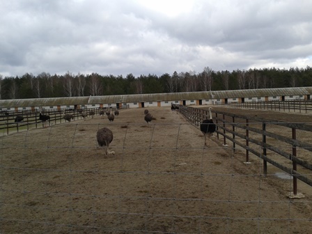Страусиная ферма была основана в 2003 году совместным белорусско-польским предприятием СООО «ПМ и Компания». Ферма была возведена на пустыре за два года. Площадь, где расположен комплекс строений и загоны для страусов, составляет 9,5 гектаров. Под сельскохозяйственные угодья отведено более 40 гектаров.