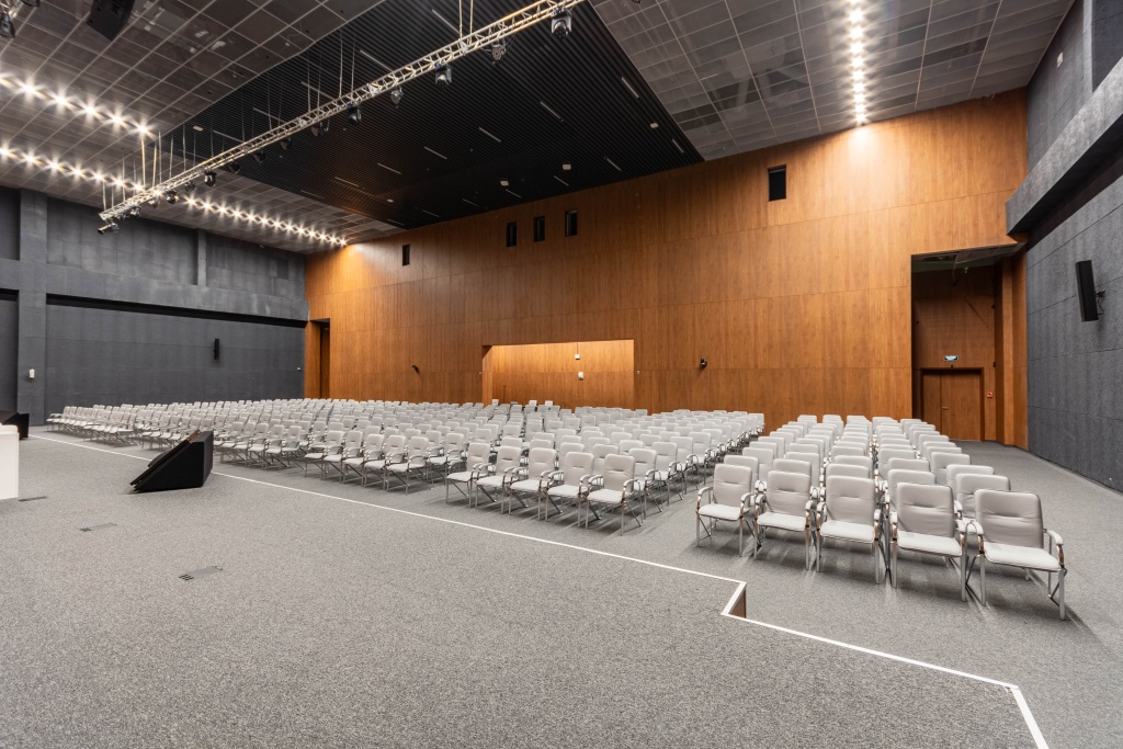 - Второй этаж. Здесь находится деловое пространство, включающее в себя модульный павильон «Немчинов холл» площадью 3400 м2 и конференц-зал «Мичурин» вместимостью до 450 человек[2].