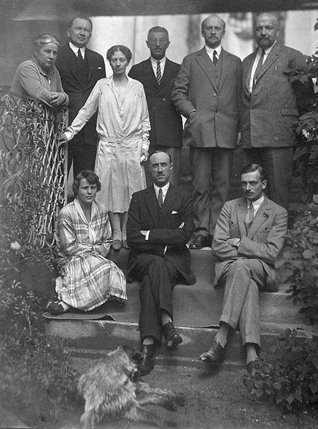 1924 год, Бавария, принадлежащий герцогу Георгию Николаевичу Лейхтенбергскому замок Зеон (Seeon). Сидят: дочь хозяина дома Елена Георгиевна Угринич-Требинская (1896—1977); генерал Петр Николаевич Врангель; муж Елены Георгиевны Аркадий Константинович Угринич-Требинский (1897—1972). Стоят: хозяйка дома герцогиня Ольга Николаевна, в девичестве Репнина-Волконская (1872—1953); личный секретарь Врангеля Николай Михайлович Котляревский (1890—1966); жена философа Наталья Николаевна Вокач-Ильина (1882—1963); поэт и издатель Сергей Алексеевич Соколов-Кречетов (1878—1936); философ Иван Александрович Ильин (1883—1954); личный представитель Врангеля в Берлине генерал-майор Алексей Александрович фон Лампе (1885—1967), выступавший от имени Врангеля в контактах с «Трестом» и спецслужбами Германии. Фото из архива Марии Апраксиной