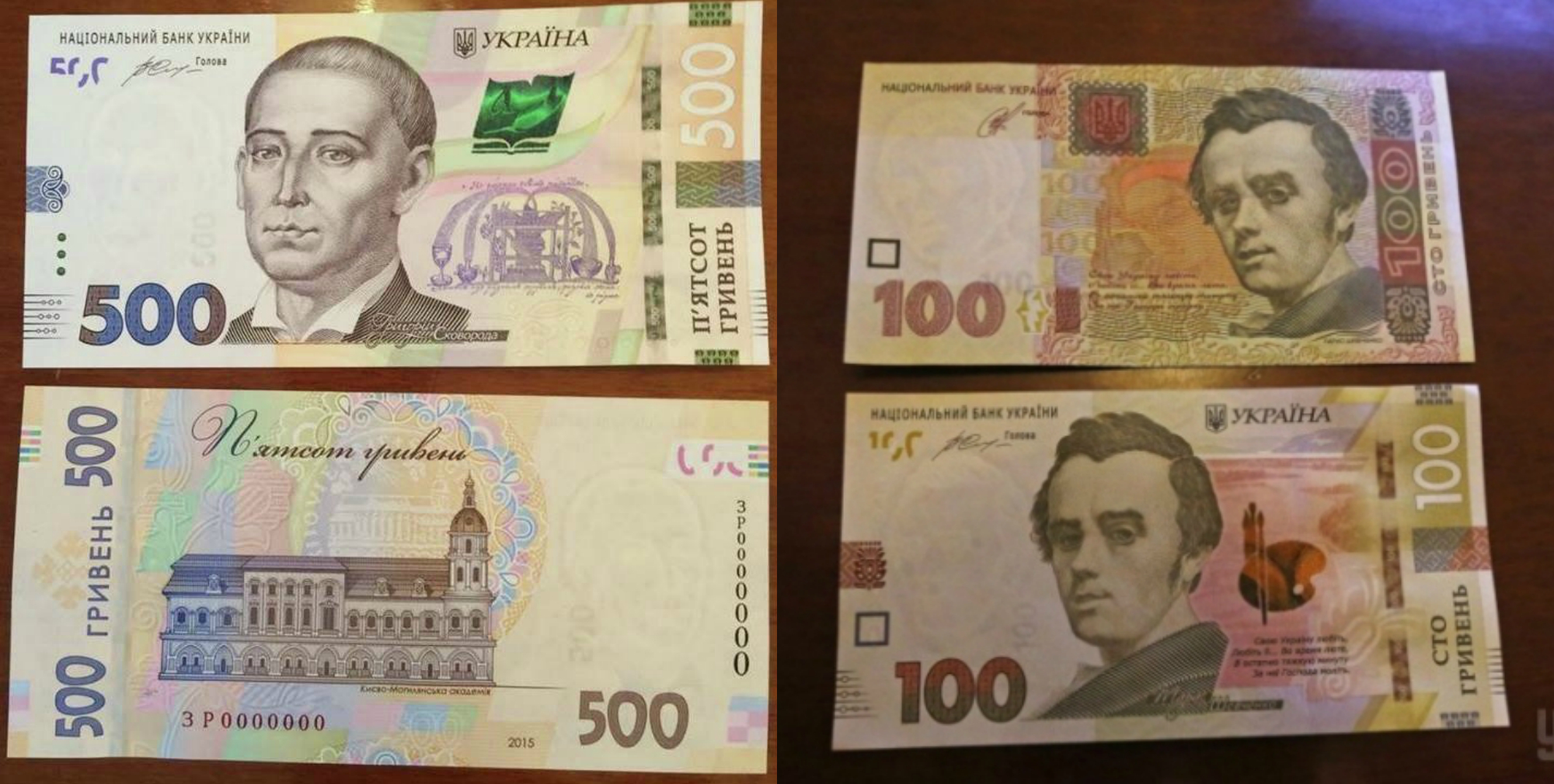 В обращении находятся банкноты достоинством 1, 2, 5, 10, 20, 50, 100, 200, 500 и 1000 гривен, и время от времени их дизайн (с сохранением тех же портретов исторических деятелей и архитектурных памятников) меняется Национальным Банком Украины. Первой была выпущена банкнота номиналом 20 гривен, так как банкнота аналогичного номинала образца 1994—2001 годов была очень популярна среди фальшивомонетчиков. Купюра достоинством 1000 гривен, вышла в оборот самой последней в 2019 году, хотя слухи о ее введении ходили еще с 2012 года.[1]