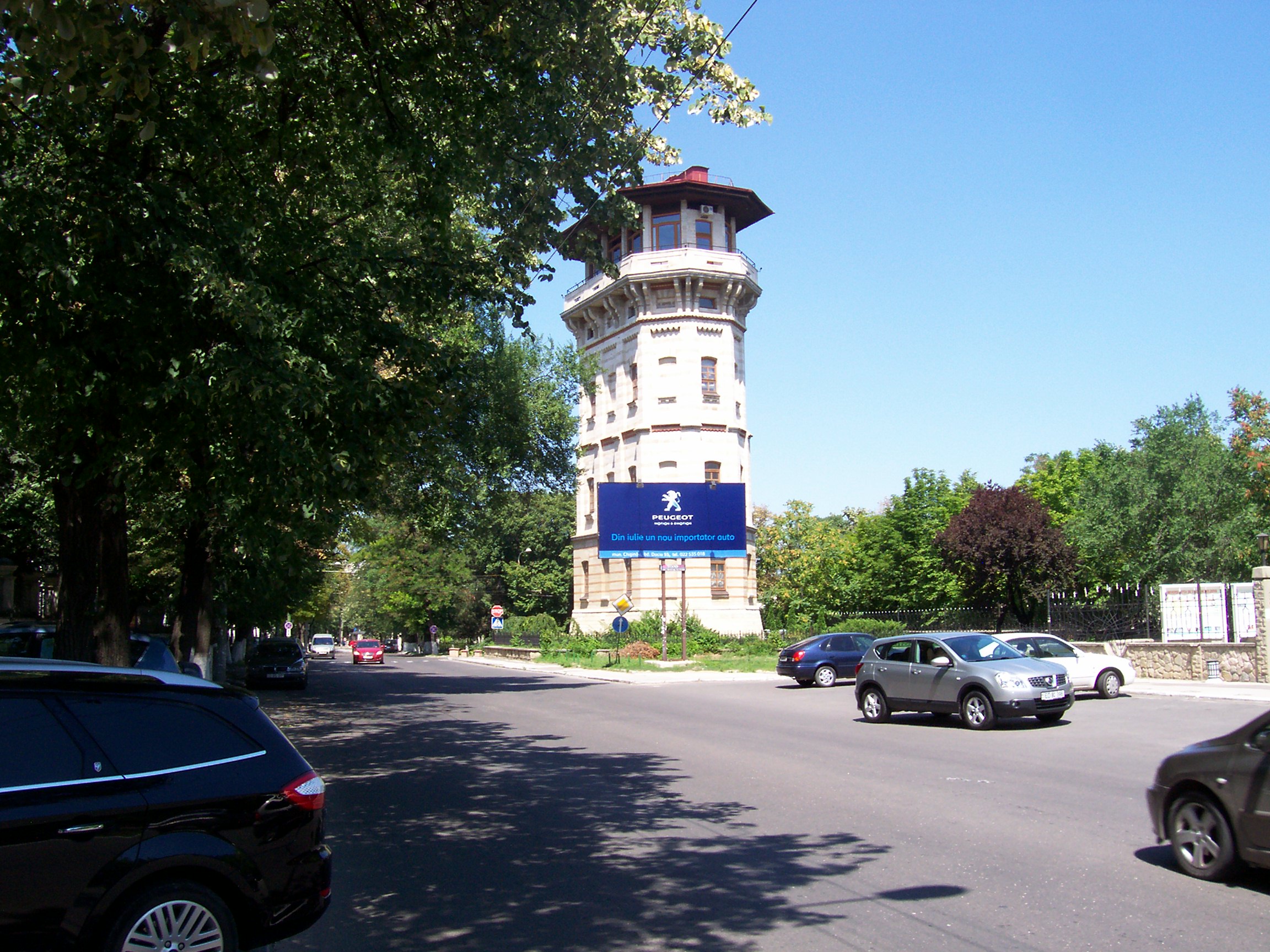Водонапорная башня была сооружена в 1892 году (архитектор — Александр Бернардацци). Башня является памятником промышленной архитектуры конца XIX века. Это сооружение положило начало развития кишинёвской водопроводной сети[6]. Кроме того, башня находилась в непосредственной близости от городской пожарной части, круговой балкон вверху башни был предназначен для дежурного пожарного. Поэтому башня совмещала функции водонапорной башни и пожарной каланчи[7]. С 1971 года в башне был размещён Музей города Кишинёва. В результате землетрясения 1977 года верхний, деревянный, этаж башни был полностью разрушен (был восстановлен в период с 1980 по 1983 годы). В здании сохранилась до наших дней старинная винтовая металлическая лестница, а в ходе реконструкции внутри башни был построен лифт. При независимой Молдавии была попытка открыть в здании экспозицию, посвящённую истории Кишинёва (в настоящее время в здании находится временная экспозиция, которая посвящена истории городского водоснабжения), но музей не работает для посетителей с середины 2000-х годов. В 2011 году немецкие специалисты смонтировали новую систему подсветки водонапорной башни[6].