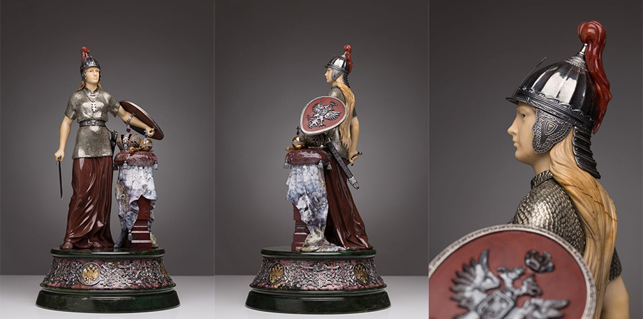4-я художественно-промышленная выставка-форум «Уникальная Россия» открылась 2 мая и продлится до 12 мая 2024 года в Гостином дворе[9]. Камнерезная композиция «Россия»: Екатеринбург, 2022 г. Камнерезная студия «Святогор» Мастера: Илья Пономорёв, Дмитрий Бабушкин, Дмитрий Евдокимов. Материалы: нефрит, пирит, кварцит, халцедон, яшма, газганский мрамор, цирконы, топазы, бронза, серебро; объёмная мозаика, литьё, серебрение, золочение. Высота 53 см