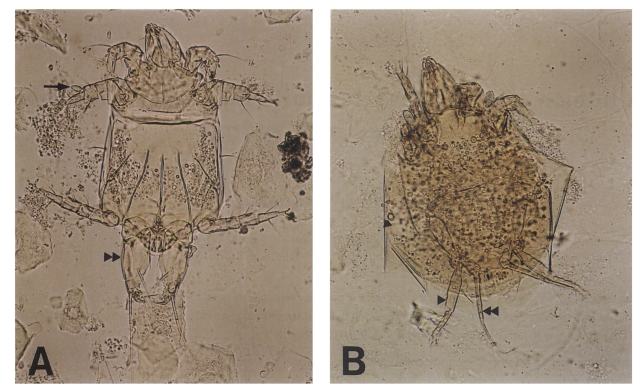 Исследование в Китае нашло, что 3,5 % образцов мочи и 6,2 % образцов кала (см. Кишечный акариаз) содержали взрослых, личинок, или яйца клещей.