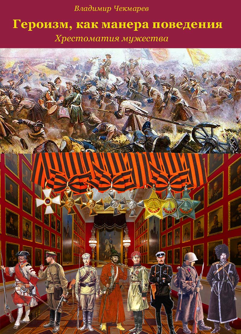 «Героизм, как манера поведения» (2018) — сборник Владимира Чекмарева.История - это не просто Наука, и изучать её надо всю жизнь, но, к сожалению, иногда даже по несколько раз за поколение, источники и критерии Истории меняются, иной раз диаметрально. Я не тщусь превзойти официальную науку, я просто хочу представить своим читателям, небольшой обзор Российской Военной Истории за двадцать пять веков. Упор, уж извините, я буду делать на героические деяния Русских воинов, которые из века в век с булатными мечами или ППШ, с Мосинской трехлинейкой или с Калашом, защищали Русь от Врага, и частенько агрессии против России, кончались парадом нашей Армии в столице агрессора и столицах, освобожденных от оккупантов стран. Припомните сами этот список: Берлин (три раза), Париж, Варшава, Неаполь, Рим, Пекин, Вена, Будапешт, Белград, Прага, Бухарест, София ... Это могут быть статьи или короткие очерки о значимых или просто интересных фактах, и не только о России, но и о наших бывших врагах и союзниках. Заранее извиняюсь за то, что привожу иногда информацию, считающуюся спорной, и, возможно, даже вызывающую сомнения, но буду очень рад, если это подвигнет вас, уважаемые читатели, более углубленно изучать отечественную историю, ибо это и является моей целью. Так, увы, сложилось, что за последние пять веков Россия имела только двести лет Мира, да и то относительного. Локальные войны и конфликты традиционно не засчитываются. ЗА ДВА С ПОЛОВИНОЙ ВЕКА СУЩЕСТВОВАНИЯ РУССКОЙ РЕГУЛЯРНОЙ АРМИИ ЕЮ ПРОВЕДЕНО 392 СРАЖЕНИЯ СО ШВЕДАМИ, КАВКАЗЦАМИ, БРИТАНЦАМИ, ФРАНЦУЗАМИ, ГЕРМАНЦАМИ, ТУРКАМИ, ПОЛЯКАМИ, ТАТАРАМИ, ЯПОНЦАМИ, КИТАЙЦАМИ, АВСТРИЙЦАМИ, ВЕНГРАМИ, ИТАЛЬЯНЦАМИ, БУХАРЦАМИ И ПРОЧИМИ ФИННАМИ. ТАК ВОТ, ИХ - ЭТИХ БИТВ И СРАЖЕНИЙ РУССКОЙ АРМИЕЙ БЫЛО ВЫИГРАНО 279. А ИЗ ТРИДЦАТИ ЧЕТЫРЁХ БОЛЬШИХ ВОЙН, В КОТОРЫХ РОССИЯ УЧАСТВОВАЛА ЗА ЭТОТ ПЕРИОД, РЕАЛЬНО ПРОИГРАННЫМИ МОЖНО НАЗВАТЬ ТОЛЬКО ТРИ - КРЫМСКУЮ, ЯПОНСКУЮ (1905 ГОД) И ПОЛЬСКУЮ (1920 ГОД). (Первую мировую войну проигранной я не считаю. Её выиграла именно Русская армия, выиграла, несмотря на предательскую политику союзников, которые, кстати, так и не смогли в процессе боевых действий вторгнуться на территорию Центральных держав, а русский штык попробовал их все). И еще хочу добавить, что очень часто наша армия уступала врагу по численности, что, впрочем, не мешало ей побеждать. Итак, добро пожаловать в Мир Военной Истории. Надеюсь, Вам будет интересно. И еще, хочу заметить, что когда Россия не воюет, она сосредотачивается, на том и стоим! Владимир Чекмарев. Москва 2018 г. Честь Имею.