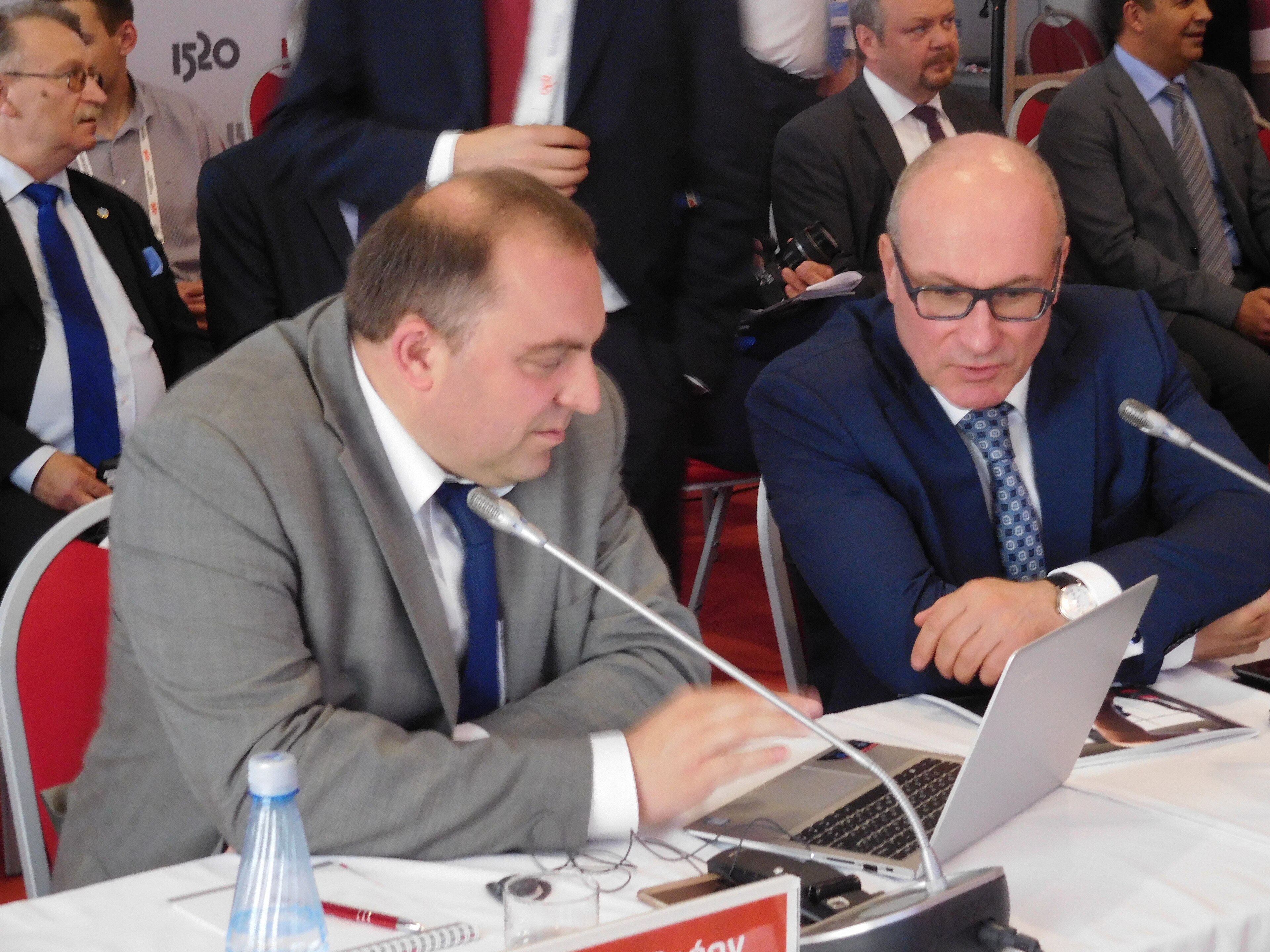 | Дмитрий Пегов и Владимир Косой на железнодорожном форуме в Сочи | |