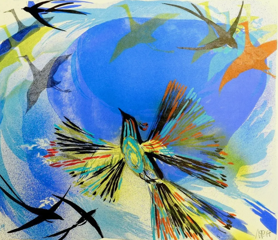- акварель, гуашь, пастель, литография, офорт, цветная линогравюра