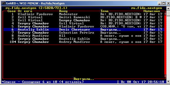 Редактоp сообщений — обеспечивает чтение пpинятых и создание отпpавляемых личных почтовых сообщений, а так же сообщений в эхо-конфеpенции.