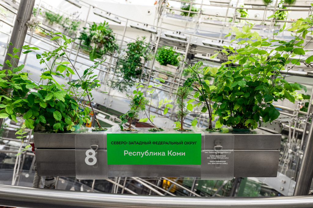 Москва представлена земляникой и черноголовкой лекарственной. У Подмосковья высажено лекарственное растение копытень европейский и вербейник. Под табличкой «Тульская область» представлена крапива: в селе Крапивна каждый год проходит Международный фестиваль крапивы. В фитобоксе Марий Эл — лопух, клевер, берёза и ясень, которые являются священными для этого народа. Популярные виды (картофель, сахарная свёкла, кукуруза и томат) распределяются по областям в соответствие со сводками урожайности по стране.