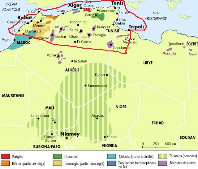 Примерная территория владений Кахины от Танжера до Триполи в период максимального расширения.