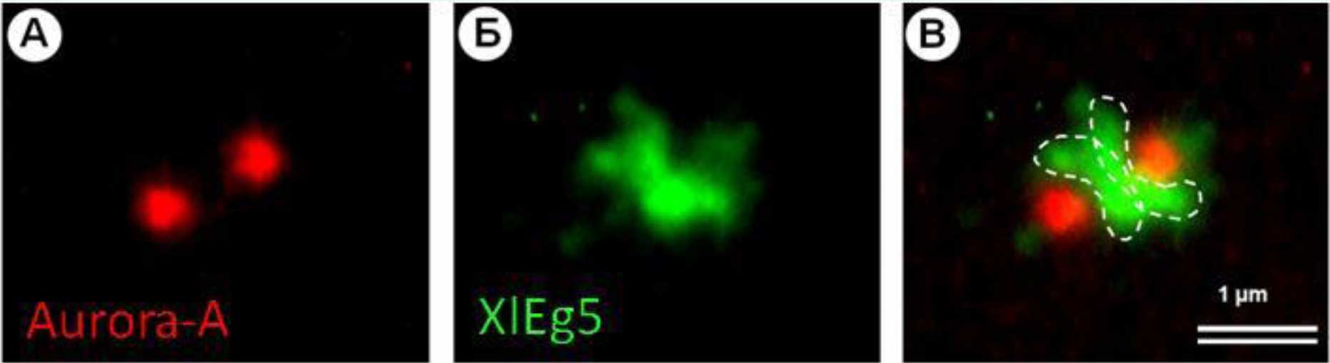Расхождение центросом происходит за счёт расталкивания димерами XlEg5 антипараллельных МТ, нуклеированных этими центросомами. XlEg5 является мотором, осуществляющим движение в сторону плюс конца МТ, поэтому, когда димер этого мотора садится одновременно на две антипараллельные МТ, это приводит к движению этих МТ и связанных с ними двух центросом в противоположные стороны[4].