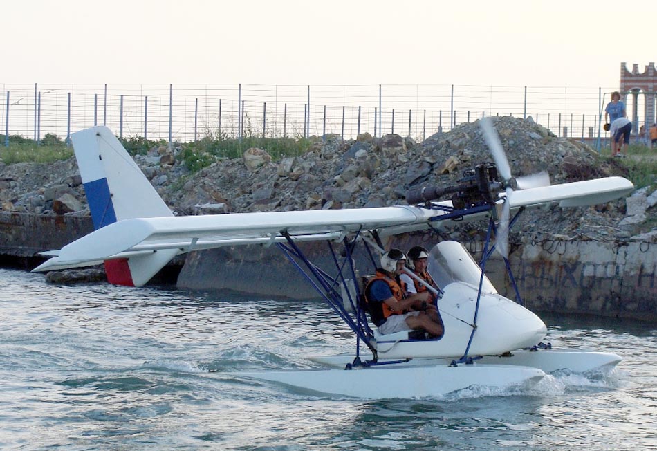 Посадка на воду выполняется на специальные поплавки, также возможны модификации для посадки на грунт и на снег.