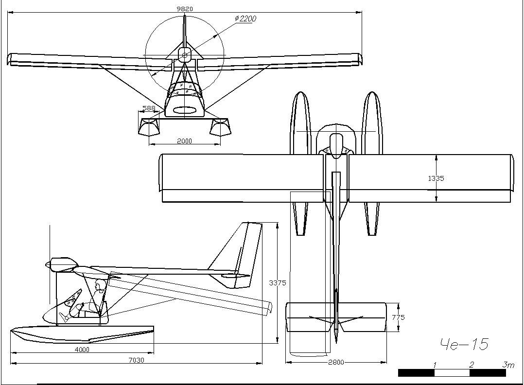 Че-15 — лёгкий, одномоторный гидросамолёт. Конструктивно представляет собой высокоплан (моноплан) с одним тянущим винтом.