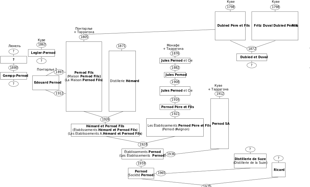 В 1975 году Pernod была поглощена компанией Ricard. Вновь созданная компания была названа Pernod Ricard.[19]