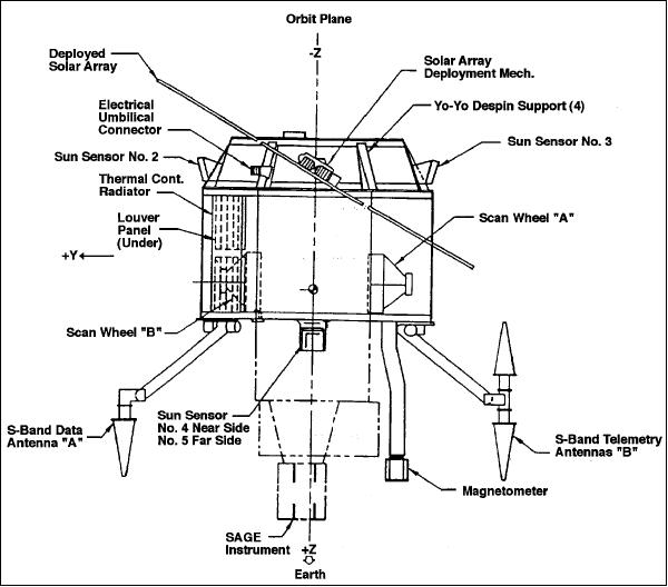 Масса спутника составляла 148,7 кг. Конструкция состояла из двух модулей: Инструментальный модуль SAGE — содержал детекторы и оборудование для измерений. Базовый модуль — включал системы обработки данных, питания, связи, управления и ориентации. Для связи использовались S-диапазонная коническая логопериодическая антенна и две УКВ-антенны[2].