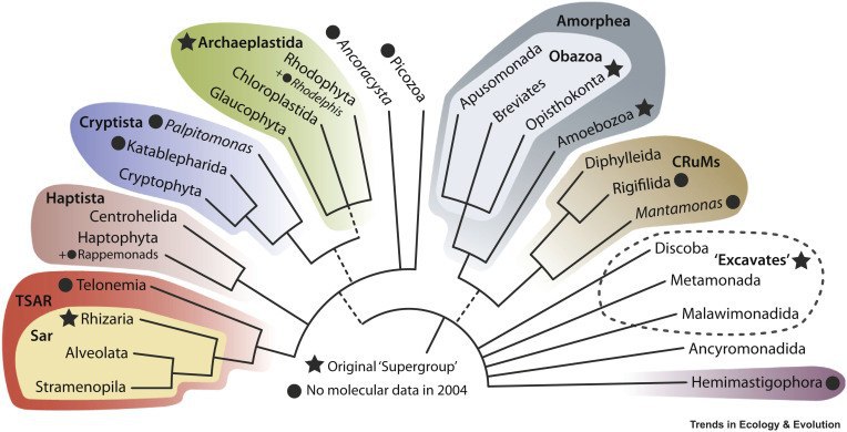 Современное деление эукариот по супергруппам (на 1 января 2020 года)[править]