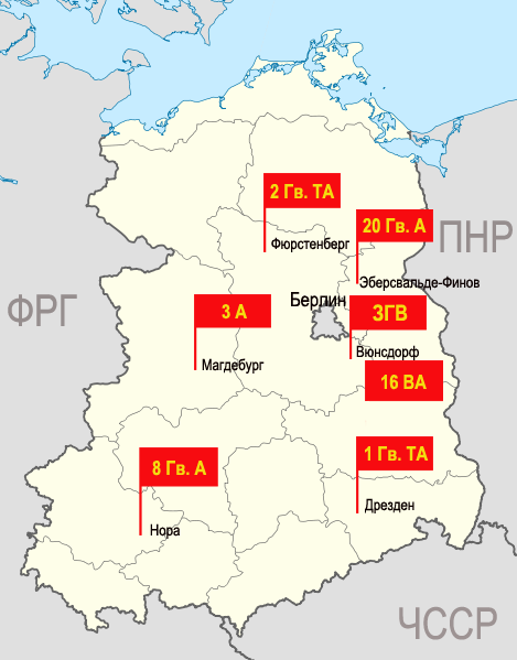 - ↑ Состав соединений и частей 16 -й воздушной армии» Группа Советских войск в Германии:: Западная Группа войск:: ГСОВГ:: ГСВГ:: ЗГВ. Архивировано из первоисточника 11 апреля 2013.[недоступная ссылка] Проверено 17 апреля 2013.