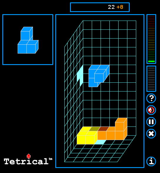 - В игре появляются различные объёмные фигуры, которые необходимо плотно укладывать на дно объёмного пространства.