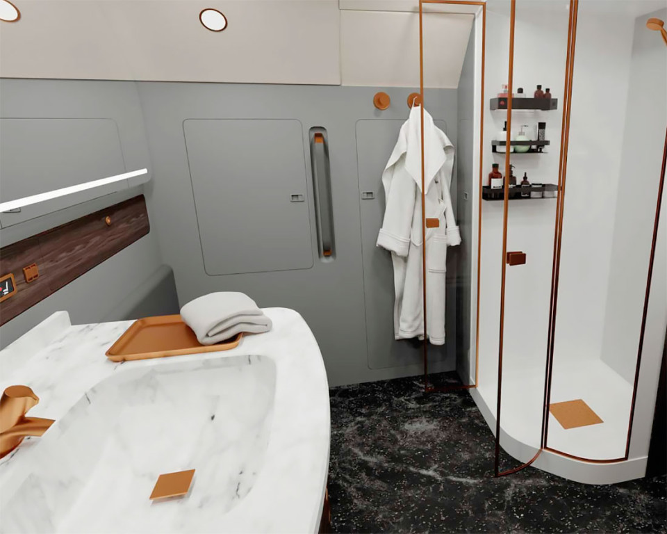 Получившийся в результате доработки самолёт имеет встроенный трап, душевую кабину, спальни[7].