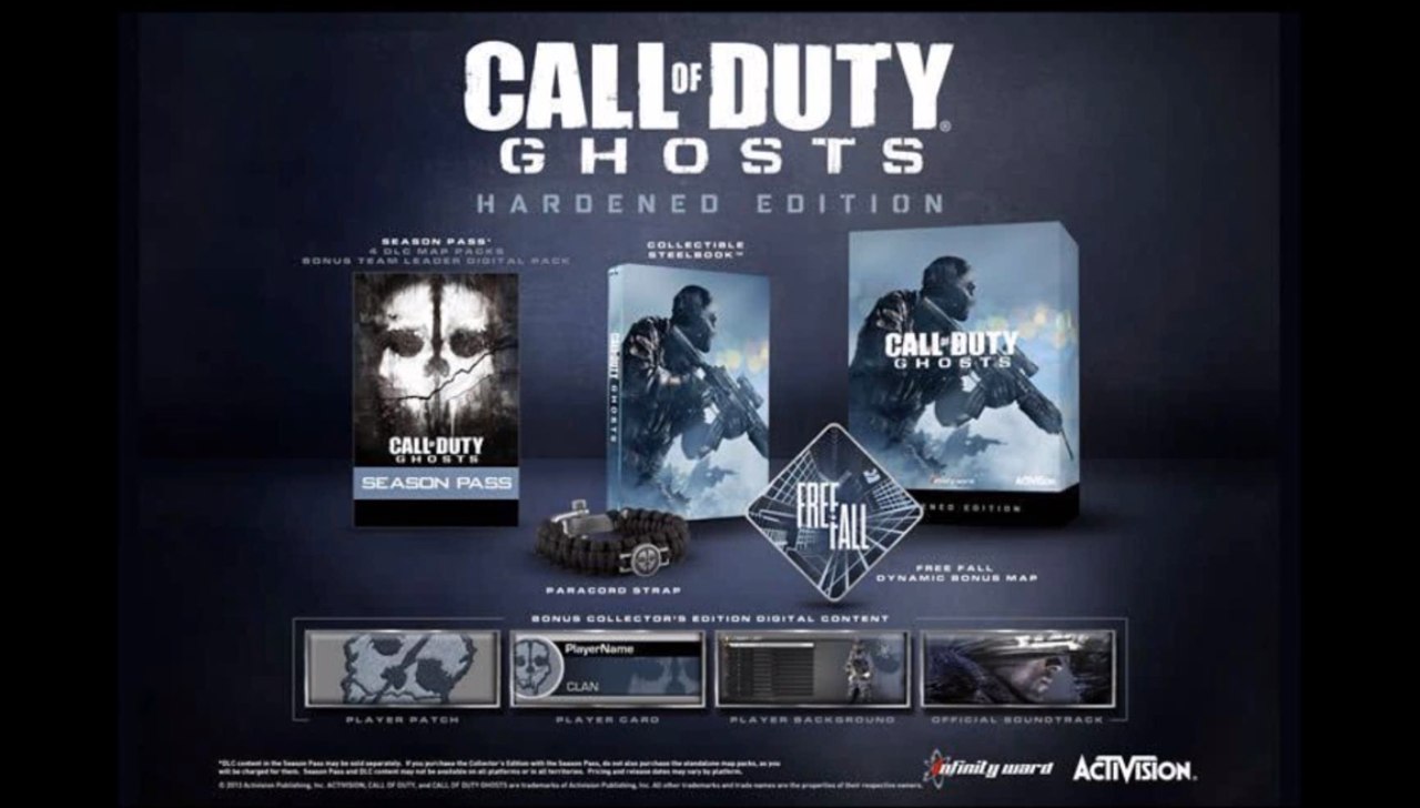 Первым официальным дополнением к Call of Duty: Ghosts становится карта Free Fall, доступ к которой будет предоставлен бесплатно для всех тех, кто разместил предзаказ на игру. Эта же карта стала первой картой игр серии Call of Duty, в которой представлено динамически меняющееся окружение[30].
