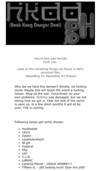 Патрик Грегори, бывший член уличной банды, создал организацию хакеров по образцу шайки уголовников. Созданное им преступное сообщество в основном занималось продажей номеров украденных кредитных карт. Помимо этого они взламывали веб-ресурсы крупных учреждений и организаций с целью развлечения или вымогательства. После успешных преступлений Грегори с сообщниками имели обыкновение хвастаться этим, привлекая внимание к себе и к тому, что они сделали. Вследствие этого 9 мая 1999 года полиция предъявила ордера на обыск шестнадцати членам организации globalHell. В результате обыска Патрик Грегори получил сначала обвинения в компьютерном взломе, затем — пятилетний срок за решёткой и штраф в 250 тысяч долларов[1].