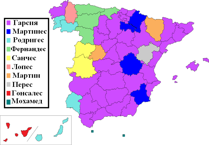 Фамилия Гонсалес наиболее популярна в провинции Санта Крус де Тенерифе