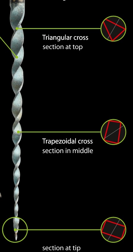 Профиль сечения — переменный по длине файла (от примерно треугольного в основании файла, через трапецевидный в средней части к прямоугольному в верхушечной части)[15].