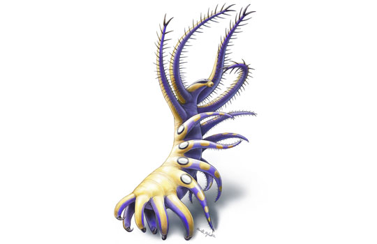 - Jean-Bernard Caron; Cédric Aria (2017). «Cambrian suspension-feeding lobopodians and the early radiation of panarthropods». BMC Evolutionary Biology. 17: 29.
