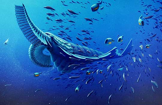 Как выяснили палеонтологи в 2014 году, животное питалось планктоном[4] при помощи гибких «усов»[5].