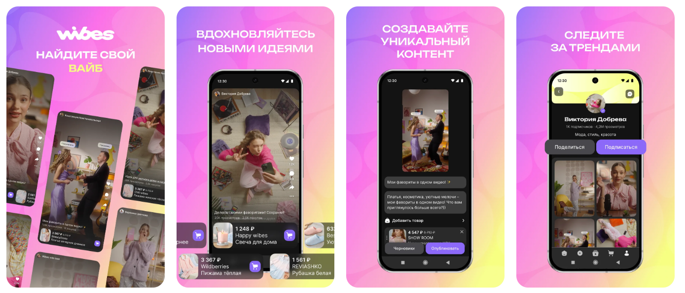 Wibes позиционируется как многофункциональная платформа, сочетающая элементы социальных сетей, видеохостинга и маркетплейса[2]. Пользователям предоставляется возможность просмотра и публикации коротких вертикальных видеороликов продолжительностью до 90 секунд, фотографий и текстовых материалов. Основной акцент сделан на товарный контент, включающий обзоры, распаковки, демонстрацию функциональности и потребительских свойств различных товаров, представленных на маркетплейсе Wildberries[3].