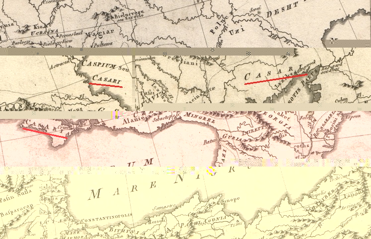 С этой Хазарией не следует путать Газарию (Крым), так как на картах она показана севернее Крыма. Газария же Крымская включала в себя южную и восточную часть полуострова, а также Таматарху на кавказском берегу.